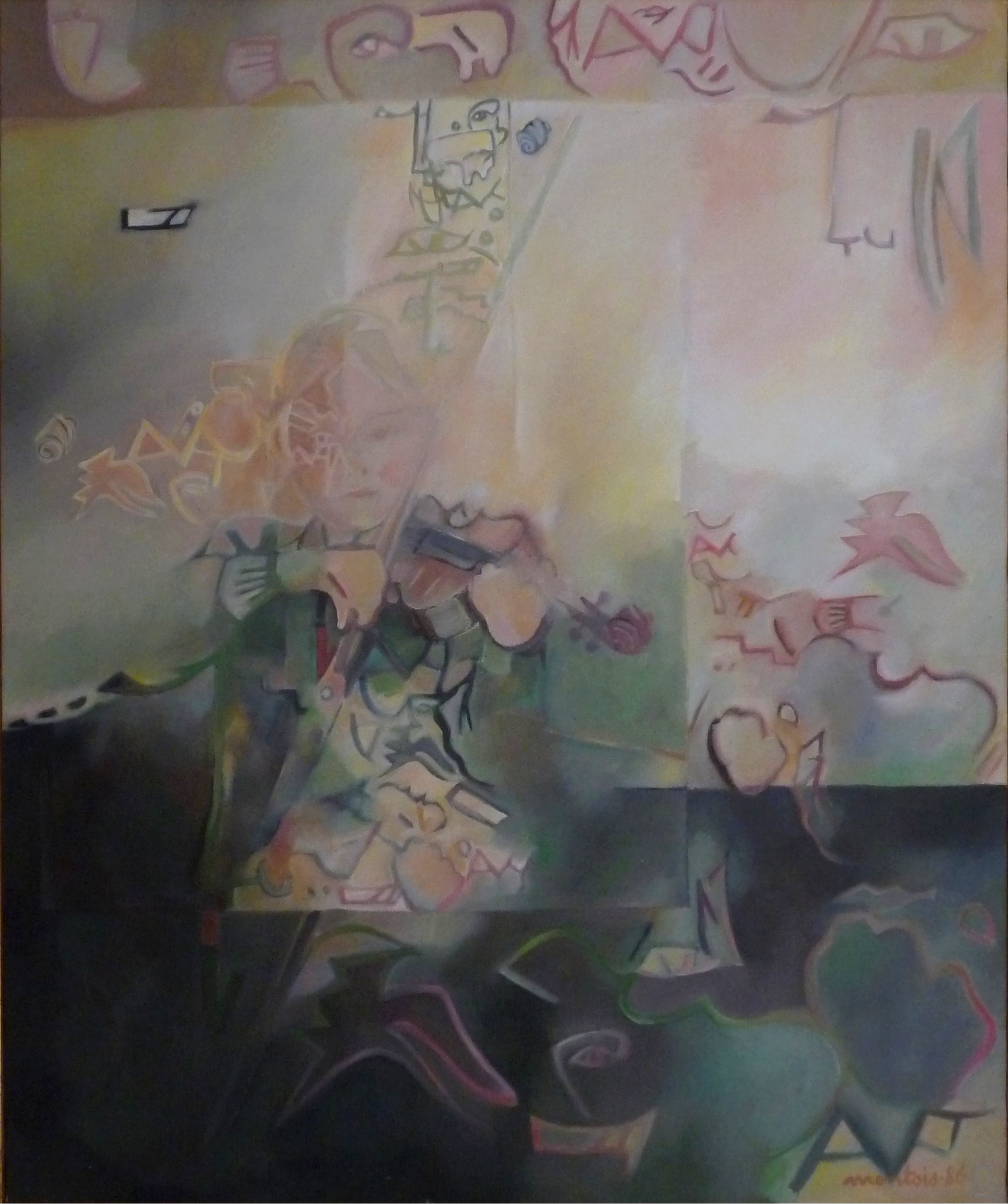 A partir des années 80, très intéressé par l’écriture, la calligraphie, il commence à déstructurer ses sujets, d’en isoler les formes, les réduisant ensuite à de simples pictogrammes avec lesquels il occupe de façon libre et poétique , jouant avec les plans, l’espace avec un sujet qui apparaît éclaté, amenant l’œil à une vision à la fois abstraite dans sa construction et figurative dans les formes que les signes graphiques évoquent.
