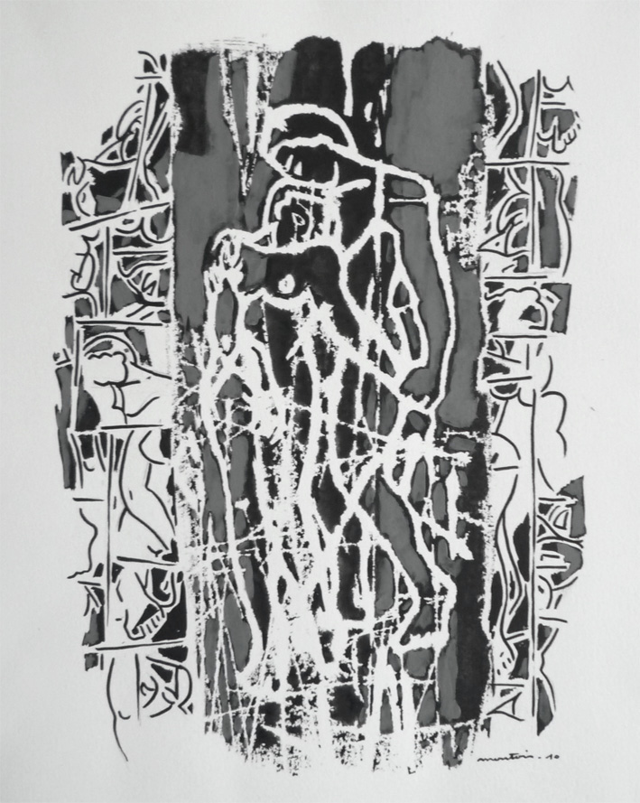 En 2009, sa participation à une exposition en Noir et Blanc lui donne l’occasion de travailler sur des empreintes aléatoires à l’encre de chine qu’il réalise à partir d’un support comportant un sujet gravé. Cela va donner une nouvelle orientation à son travail.